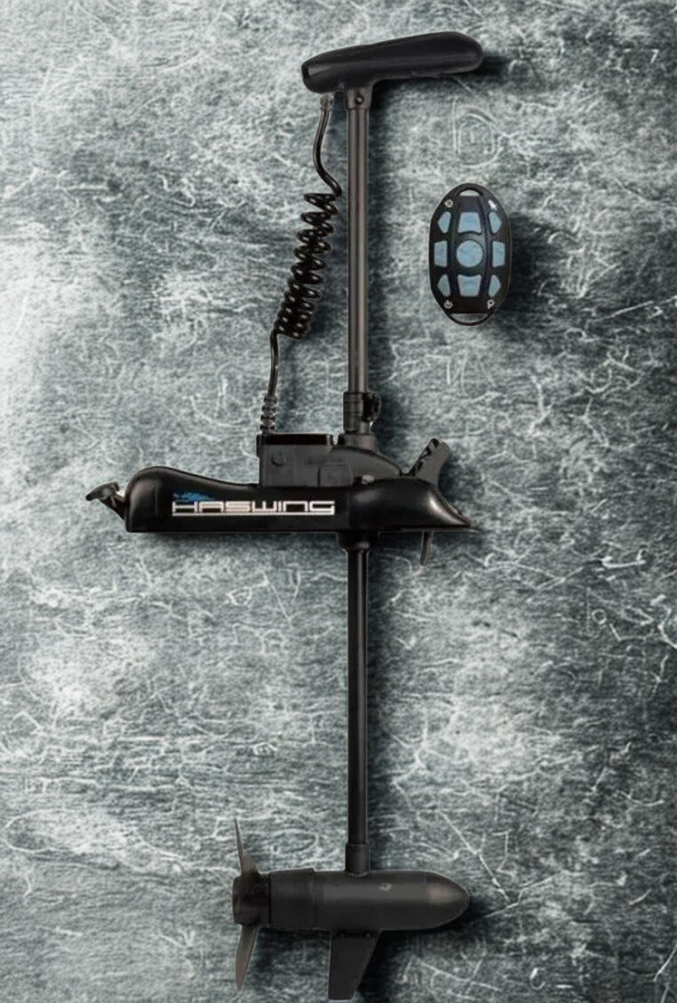 Il motore elettrico Haswing Cayman-B 80Lbs GPS è un motore per imbarcazioni che può essere montato a prua senza bisogno con una staffa di montaggio apposita. È dotato di un telecomando e della funzione GPS che può essere controllata tramite smartphone Apple o Android.